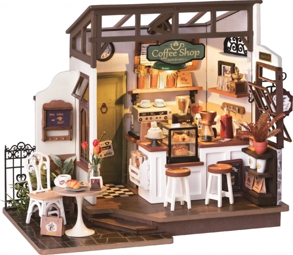 Holen Sie die Atmosphäre eines gemütlichen Cafés direkt zu sich nach Hause. Das 3D-Holzpuzzle RoboTime zeigt ein detailreiches Diorama mit Bartresen, Hockern, Pflanzen, Beschriftungen und Accessoires, die zusammen ein harmonisches Gesamtbild ergeben. Dank der durchdachten Konstruktion aus hochwertigem Holz ist das Modell stabil, präzise und macht sich nach dem Aufbau hervorragend als Dekoration oder Sammlerstück.