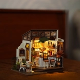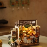 Der Zusammenbau ist intuitiv und macht Spaß – die einzelnen Teile passen exakt ineinander, sodass sowohl Einsteiger als auch erfahrene Modellbauer auf ihre Kosten kommen. Rund 6 Stunden Bastelzeit bieten eine wohltuende Auszeit vom Alltag, und das Ergebnis ist ein stilvolles Mini-Café mit Beleuchtung, das Regal, Schreibtisch oder Vitrine erstrahlen lässt.