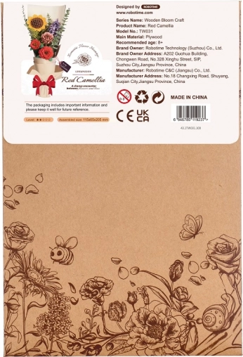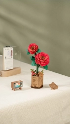 Dieses elegante 3D-Holzpuzzle bildet ein detailliertes Modell der Roten Kamelie im Blumentopf. Die Teile aus hochwertigem, ökologischem Holz passen präzise ineinander und das fertige Modell eignet sich hervorragend als stilvolle Dekoration für Tisch, Regal oder Arbeitszimmer.