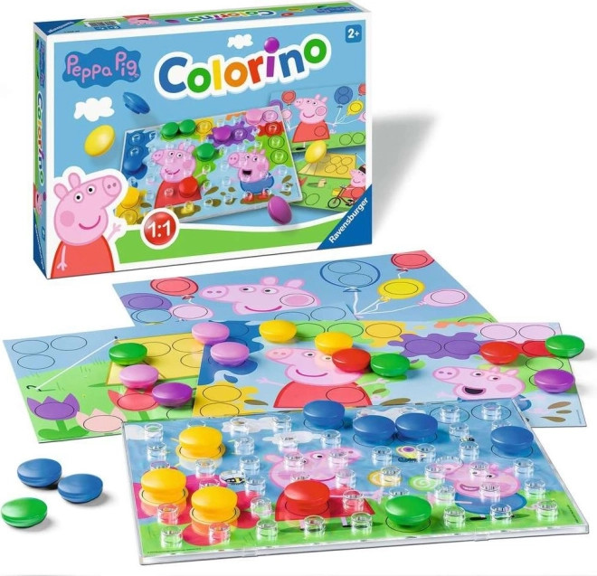 Beim Spiel Colorino lernen Kinder auf spielerische Weise, die wichtigsten Farben zu erkennen und einander zuzuordnen. Sechs farbige und sechs schwarz-weiße Vorlagen mit altersgerechten Motiven laden kleine Spieler dazu ein, sie mit bunten Knöpfen zu belegen. Die Knöpfe sind extra groß und lassen sich von Kindern leicht auf der Lochplatte befestigen. Das Spiel fördert die Feinmotorik und die Wahrnehmung. So wird gespielt: 1. Wähle ein Bild (farbig oder schwarz-weiß). 2. Lege das Bild unter die transparente Lochplatte. 3. Bei farbigen Bildern: Lege die Knöpfe entsprechend den Farben auf dem Bild. 4. Schwarz-weiße Bilder kannst du nach deiner Fantasie mit bunten Knöpfen belegen. Packungsinhalt: 40 bunte Einrast-Knöpfe, 1 transparente Lochplatte, 6 Bildvorlagen (beidseitig bedruckt).
