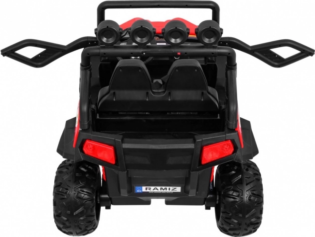 Dank der großen EVA-Räder und der robusten Konstruktion ist dieses Auto bereit für jedes Abenteuer. Kinder werden das Spielen lieben dank realistischer Funktionen wie Touch-Start mit realistischen Motorgeräuschen und interaktive Musiksteuerung über das Audio-Panel, das FM-Radio, MP3, SD-Karten, AUX und Bluetooth unterstützt.