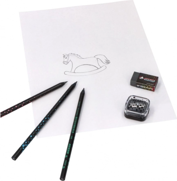 Dieses großartige Set aus Bleistiften, Radiergummi und Anspitzer von der Marke Jolly Next Gen ist ideal für Schüler und Künstler. Dank des ergonomischen Designs liegt es hervorragend in der Hand und sorgt für komfortables Zeichnen über viele Stunden.