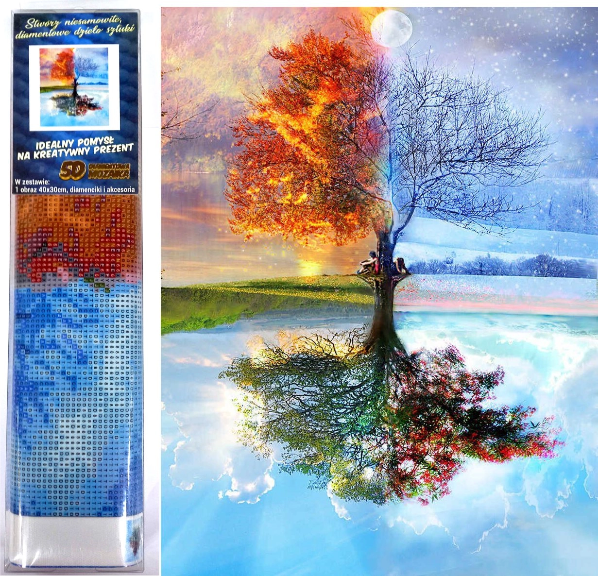 Diamantmalerei ist eine großartige Möglichkeit, zu entspannen und gleichzeitig ein schönes Mosaik aus funkelnden Steinchen zu schaffen. Das Motiv des Baumes in den vier Jahreszeiten bringt eine farbenfrohe Harmonie, die in jedem Interieur zur Geltung kommt. Alles Nötige finden Sie in einer Box – öffnen, loskleben und zusehen, wie das Bild lebendig wird.