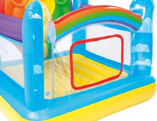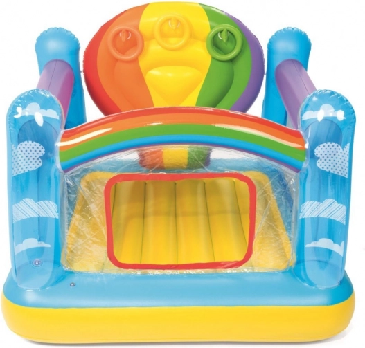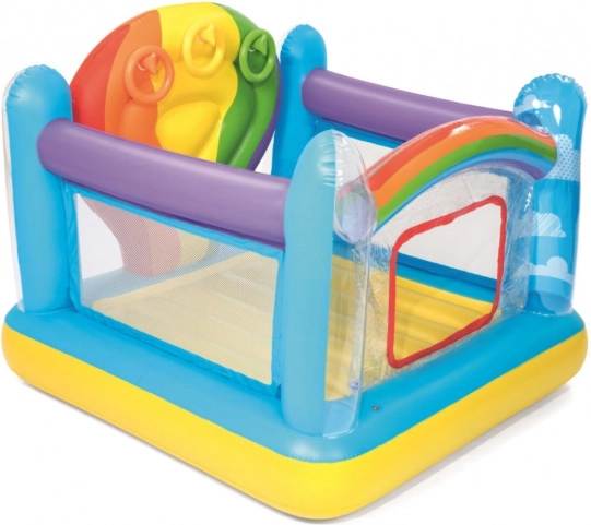 | - robuste, farbige Seitenwände, - der Spielplatz ermöglicht Ihrem Kind das Springen und Hüpfen auf einem strapazierfähigen aufblasbaren Kissen, - Sicherheitsventile, - strapazierfähiges, geprüftes Vinyl, - farbige, interaktive Sprungfläche, - Fenster für einen leichten Einstieg, - Wurfringe an Haken in den Seitenwänden, - drei aufblasbare Ringe sind im Lieferumfang enthalten. | |