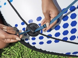 Für eine sichere und einfache Nutzung ist der Ring mit einem Sicherheitsventil gegen Luftverlust sowie mit dem cleveren CLASP 'N GO System zur Verbindung mit einem weiteren Ring ausgestattet. Im Lieferumfang ist zudem ein Reparaturflicken für unerwartete kleine Beschädigungen enthalten.