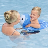 Das kontrastreiche blau‑weiße Design mit dem lächelnden Pinguingesicht hilft Kindern, im Wasser besser sichtbar zu sein, und macht das Schwimmenlernen zum Vergnügen.