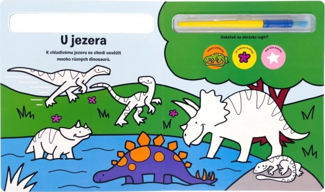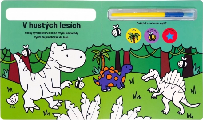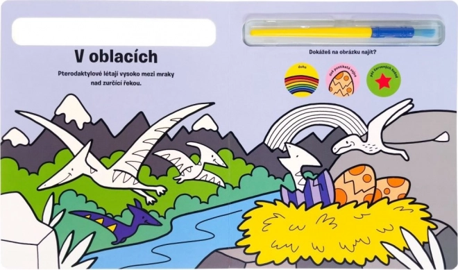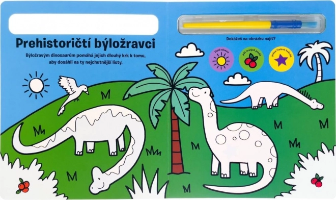 Tauchen Sie ein in die Welt der prähistorischen Kreaturen mit dem Buch Färbe mich! Dinosaurier. Dieses Buch hat robuste Seiten mit teilweise farbigen Bildern, die Ihre Kinder immer wieder ausmalen können. Ein wenig Wasser genügt und die Farben erscheinen magisch auf dem weißen Papier, um dann genauso schnell zu verschwinden, wenn sie trocknen.