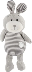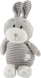 Dieser graue, gestreifte Hase mit liebevollen Details und einem Herzchen auf dem Bäuchlein vermittelt Kindern ein Gefühl von Geborgenheit und Komfort. Er ist aus angenehm weichem Material gefertigt, das zum Umarmen einlädt und selbst für die Kleinsten sanft ist.