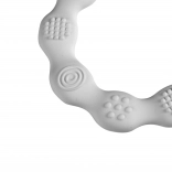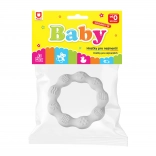 Leichter und robuster Beißring aus weichem Silikon, entwickelt für kleine Kinderhände. Die runde Form erleichtert das Greifen und Handhaben, während die reliefartige Oberfläche bei Zahndurchbruch Linderung verschafft. Die neutrale weiße Farbe passt zu jeder Ausstattung.