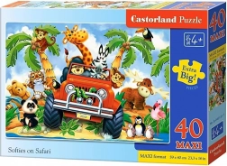 Entdecken Sie die bunte Welt der Safari mit Maxi-Puzzles, die dank 40 großen, leicht greifbaren Teilen jeden kleinen Baumeister erfreuen. Nach dem Zusammensetzen entsteht ein übersichtliches Bild im Format 59 × 40 cm – ideal für die ersten größeren Puzzles.