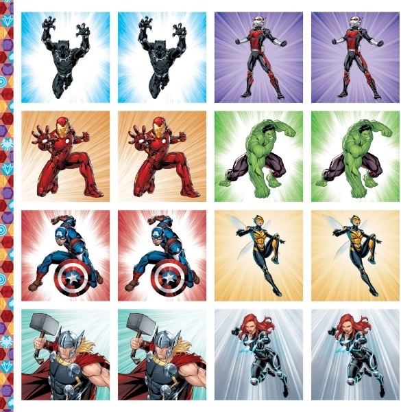 Entdecken Sie die Welt der MARVEL-Superhelden mit einem praktischen Memory-Heft. Kinder genießen ein spannendes Spiel, bei dem sie Gedächtnis, Konzentration und Wahrnehmung trainieren. Nach dem Spiel können alle Kärtchen in die eigene Papierschachtel eingeräumt werden, die die Kinder selbst ausschneiden und zusammenbauen.