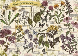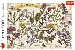 Puzzle Buch der Kräuter enthält 500 Teile und bietet eine wunderschöne Retro-Grafik mit Pflanzen, die an ein altes Herbarium erinnern.