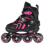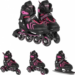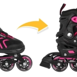 Dieses praktische 4-in-1-Set wächst mit dem Kind und ermöglicht ganzjährigen Fahrspaß – draußen auf Asphalt und in der Halle sowie im Winter auf dem Eis. Dank der 5-stufigen Größenverstellung (29–33) passen sich die Schuhe mühelos an eine Fußlänge von 16,5–20 cm an. Die halbfeste Konstruktion schützt den Knöchel, während eine semipermeable Membran und das Belüftungssystem für ein angenehmes Klima im Schuh sorgen.