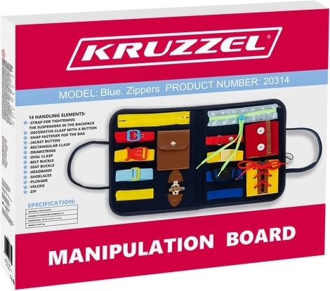 Die Kindermanipulationstafel ist ein sinnliches Hilfsmittel, das hilft, die Hand-Auge-Koordination, logisches Denken und Selbstständigkeit zu entwickeln. Sie bietet 14 Manipulationselemente, wie Reißverschlüsse, Knöpfe, Schnallen und Schnürungen zur Übung praktischer Fähigkeiten.