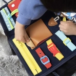 Kindermanipulationstafel in Form einer Handtasche ist ein ideales Werkzeug zur Förderung der Feinmotorik und der Hand-Auge-Koordination von Kindern. Tragbar und sicher, aus leichtem Filz gefertigt, ermöglicht es Kindern, neue Fähigkeiten in einer sicheren Umgebung zu entdecken.