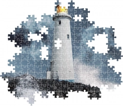 Die realistische Szene eines Leuchtturms in stürmischer Brandung besticht durch scharfe Linien und satte Farben und macht das Puzzeln zu einem echten visuellen Erlebnis.