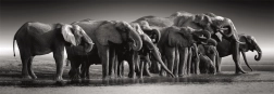 Die eindrucksvolle schwarz‑weiße Fotografie von Elefanten am Wasser verleiht dem fertigen Bild eine zeitlose Optik und passt perfekt in moderne Interieurs.
