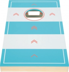 Diese hochwertige Spielplatte aus Holz vereint zwei beliebte Aktivitäten in einem kompakten Format. Auf der einen Seite spielen Sie Cornhole – das Werfen von Stoffbeuteln in eine Öffnung, auf der anderen Seite Tischhockey – das Abschießen des Pucks mithilfe eines Gummibands auf Zielbereiche. Dank der Pfeilmarkierung der Punkte statt Zahlen können selbst jüngere Kinder den Spielstand mitzählen.