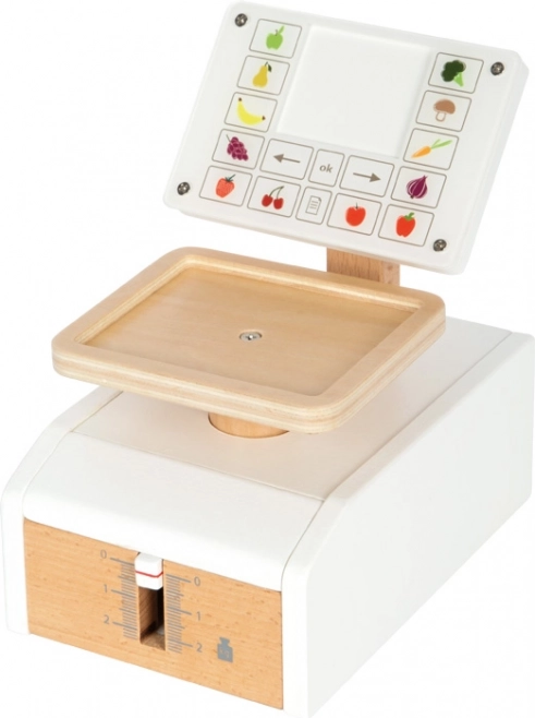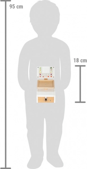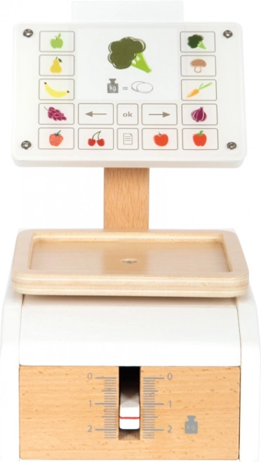 Die Kinderwaage small foot Fresh ist die ideale Ergänzung für jede Kinderküche oder jeden Kaufmannsladen. Die realistische Bewegung von Anzeiger und Schale unter Belastung fördert das Verständnis des Prinzips der Gewichtsmessung. Das große „Display“ aus hochwertigem Acryl ist mit Bedienelementen sowie Obst- und Gemüsemotiven bedruckt und erhöht so Übersichtlichkeit und Spielspaß.