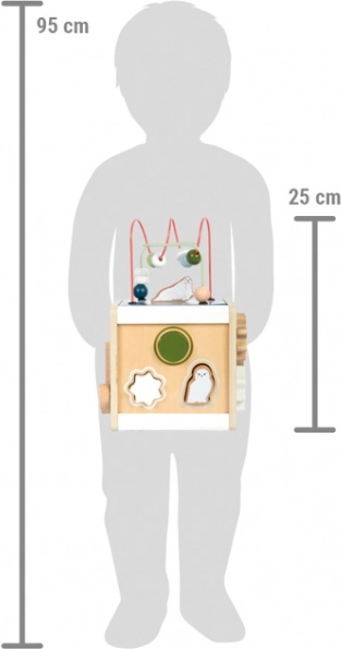 Gönnen Sie Kindern endlosen Spielspaß und Lernen mit dem hölzernen Motorikwürfel SMALL FOOT ARCTIC aus 100 % FSC-Holz. Auf fünf Seiten bieten Perlenlabyrinthe, Formen-Steckspiel, Schiebelabyrinthe, Zahnräder und Dreh-Elemente vielfältige Aktivitäten zur Förderung von Feinmotorik, Logik und Farb- und Formwahrnehmung. Der abnehmbare Deckel erleichtert das Verstauen der Teile, abgerundete Kanten sorgen für sicheres Spiel, und das moderne arktische Design fügt sich perfekt ins Kinderzimmer ein.