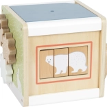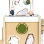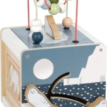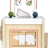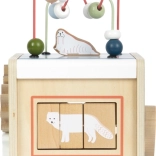 Dieser multifunktionale Motorikwürfel mit Motiven arktischer Tiere (Eisbär, Seehund, Walross und weitere) ist ein durchdachtes Lernspielzeug für Kinder ab 12 Monaten. Dank zwei Perlenbahnen, Formen-Steckspiel, Schiebelabyrinthen, drehbaren Plättchen und Zahnrädern trainieren Kinder Hand-Auge-Koordination, Geduld und räumliches Denken. Der abnehmbare Deckel ermöglicht das einfache Verstauen der Teile im Inneren.