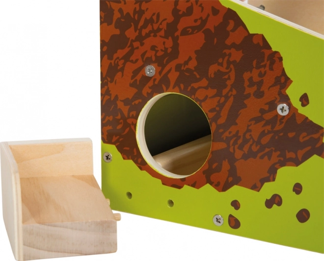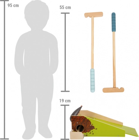 Entdecken Sie den Zauber des Minigolfs in kindgerechter Ausführung. Die stabile Holzbahn mit einem witzigen „Maulwurfshügel“ und Fangmechanismus reagiert auf jeden präzisen Putt – der Ball rollt durch den Tunnel und der Maulwurf steckt sein Köpfchen heraus. Dank der kompakten Maße ist das Spiel ideal fürs Kinderzimmer, Wohnzimmer oder den Garten.