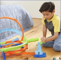 Erleben Sie endlosen Spaß mit Hot Wheels Verdrehter Tornado, der zwei Spielmodi bietet: Sie können ein Rennen starten oder Sprünge ausführen und Punkte sammeln. In beiden Modi passieren die Autos epische Loopings und Kurven, die ein aufregendes Erlebnis garantieren.