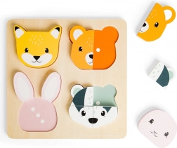 Dieses wunderschöne 10-teilige Holz-Steckpuzzle ist ideal für kleine Entdecker, die lernen möchten, Formen, Farben und grundlegende Zahlen zu unterscheiden. Kinder werden sich an den niedlichen Tieren wie Fuchs, Bär, Hase und Dachs erfreuen, die in einzelne Teile zerlegt sind und in die richtigen Öffnungen gesteckt werden müssen. Jedes Teil ist mit Punkten markiert, was Kindern hilft, die noch keine Zahlen kennen.