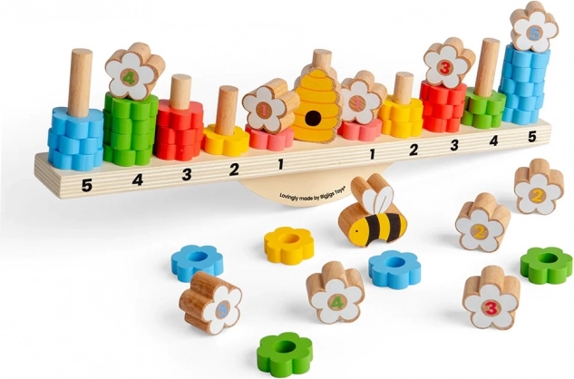 Balancespiel Biene bietet Spaß für Kinder und Erwachsene. Ziel des Spiels ist es, bunte Blüten auf dem Brett so zu balancieren, dass es stabil bleibt. Wer zuerst drei weiße Blüten erfolgreich stapelt, gewinnt. Die Biene kann verwendet werden, um das Gleichgewicht zu halten oder den Gegner zu blockieren.