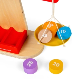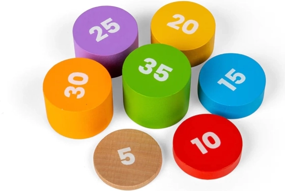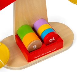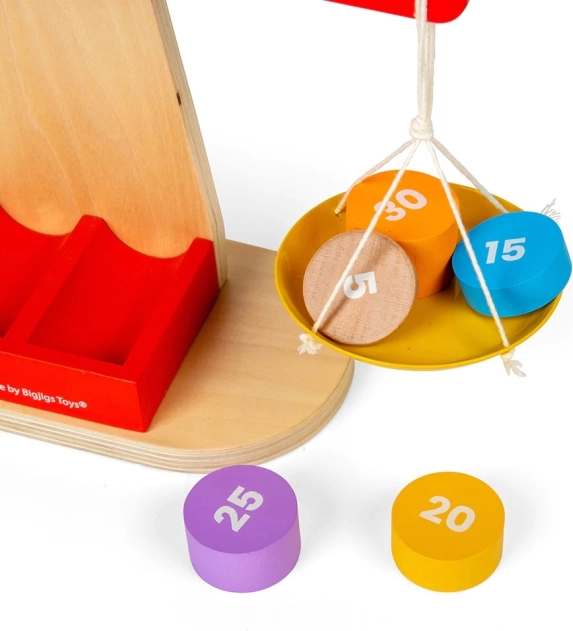 Ausgestattet mit einem Holzrahmen, zwei Balanceschalen und einem Satz von sieben nummerierten Gewichten, ermöglicht die Waage Kindern, mit verschiedenen Kombinationen zu experimentieren und etwas über Gleichgewicht zu lernen. Ziel ist es, einen ausgeglichenen Zustand durch Hinzufügen oder Entfernen von Gewichten zu erreichen. Ideal für STEM-Lernen, das Kreativität und innovatives Denken umfasst. Es fördert auch Feinmotorik, räumliches Wahrnehmungsvermögen und Problemlösungsfähigkeiten.