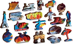 61 Spezialteile in Form von Tieren, Bauwerken und Gegenständen. Präziser Laser sorgt für glatte Kanten und schön hervorgehobene Details.