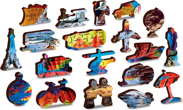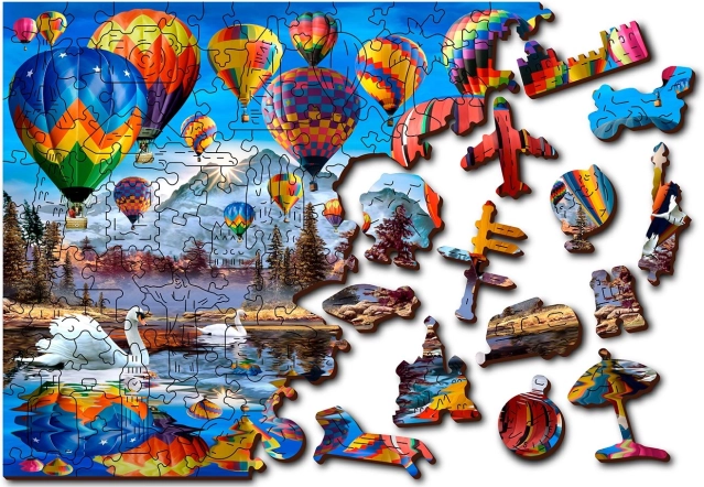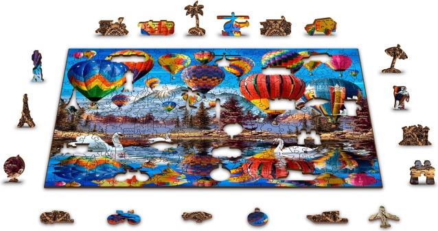 Elegante und unterhaltsame Herausforderung für Puzzle-Liebhaber. Das Holzpuzzle mit Heißluftballon-Motiv bietet ein einzigartiges Erlebnis dank 61 speziell geformter Teile in Form von Tieren, Bauwerken und Gegenständen. Einige davon lassen sich als kleine Figuren aufstellen – ein tolles Geschenk und eine stilvolle Dekoration.