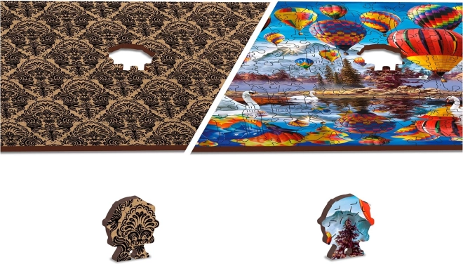 Entdecken Sie die Faszination des Puzzelns mit einem beidseitigen Holzpuzzle, das höheren Schwierigkeitsgrad, einzigartig geformte Teile und umweltfreundliche, plastikfreie Verpackung bietet. Präzise lasergeschnittene Teile aus starker HDF-Platte garantieren glatte Kanten, perfekten Sitz und lange Lebensdauer. Genießen Sie den 2-in-1-Spaß – auf der Vorderseite ein schönes Motiv mit Heißluftballons über der Landschaft, auf der Rückseite ein Muster zum Puzzeln nach Form.