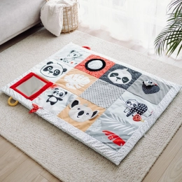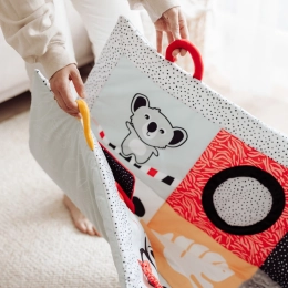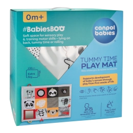 Die sensorische Lern-Spielmatte Canpol babies für die Bauchlage aus der Kollektion BabiesBoo ist eine sichere und angenehme Möglichkeit, Ihr Kind in Bewegung zu halten und ermöglicht es den Eltern, einen Moment für sich zu haben oder Hausarbeiten zu erledigen. Die Matte ist außergewöhnlich groß und weich – 130 x 95 cm bieten Ihrem Kleinsten Komfort und Sicherheit. Die Lernmatte von Canpol babies lässt sich leicht zusammenfalten, hat einen bequemen Tragegriff und ist dadurch einfach zu transportieren, sodass Sie überall dort einen Kinderbereich schaffen können, wo Sie ihn benötigen. Der große Spiegel animiert und verlängert die Bauchlage, während der Ihr Baby jedes Mal verschiedene Bereiche der Matte entdecken kann. Zahlreiche sensorische Elemente stimulieren die Sinne des Kindes: Sehen, Hören und Tasten. Unterschiedliche Materialstrukturen, kontrastreiche Farben und Muster sowie sanfte Geräusche bieten großartige Unterhaltung für die sich entwickelnden Sinne Ihres Babys von den ersten Lebensmomenten an. Die sensorische Lernmatte von Canpol babies unterstützt die richtige motorische Entwicklung jedes Kindes. Die Matte ist maschinenwaschbar.Kinderbereich überall dort, wo wir ihn brauchen.Empfohlen von der Physiotherapeutin Magdalena Zujewicz – Kinderphysiotherapeutin, Pädagogin und SI-Therapeutin.Außergewöhnlich große und weiche Matte, die Ihrem Baby Komfort und Sicherheit bietet.Der große Spiegel weckt das Interesse des Babys und verlängert die in Bauchlage verbrachte Zeit.Viele Elemente, die die Sinne des Kindes ansprechen: Sehen, Hören und Tasten.Lässt sich dank des bequemen Tragegriffs leicht zusammenfalten und einfach transportieren.Kontrastreiche Farben und Muster unterstützen die Sehentwicklung des Kindes.Fördert die taktile Entwicklung und trainiert manuelle Fähigkeiten.Entwickelt die Hand-Auge- und die audio-motorische Koordination.Leicht sauber zu halten – maschinenwaschbar.Ideal für Kinder ab den ersten Lebensmomenten.Das Spielzeug besteht aus sicherem Material ohne Bisphenol A.Abmessungen der Matte: 130 x 95 cmGebrauchsanweisung:Die Reinigungsmethode ist auf dem Etikett angegeben. Waschen Sie die Matte – außer dem Spiegel – in der Waschmaschine bei maximal 30 °C im Schonwaschgang. Halten Sie die Spielmatte sauber. Waschen Sie die Spielmatte – außer dem Spiegel – in der Waschmaschine bei max. 30 °C im Schonwaschgang. Verwenden Sie ein mildes Waschmittel für Kinder. Separat waschen. Den Spiegel mit einem feuchten Tuch abwischen. Entfernen Sie die Schutzfolie vom Spiegel.Warnhinweis! Wichtig für die Gesundheit und Sicherheit Ihres Kindes! Vor jedem Gebrauch sorgfältig prüfen. Ersetzen Sie abgenutztes/beschädigtes Spielzeug durch ein neues.Warnung! Von Zündquellen fernhalten. Bewahren Sie die Anleitung für eine spätere Verwendung auf.Die Matte entspricht den Anforderungen der:Richtlinie 2009/48/EG des Europäischen Parlaments und des Rates über die Sicherheit von SpielzeugEN 71 - 1 Sicherheit von Spielzeug – Teil 1: Mechanische und physikalische EigenschaftenEN 71 - 2 Sicherheit von Spielzeug – Teil 2: EntflammbarkeitEN 71 - 3 Sicherheit von Spielzeug – Teil 3: Migration bestimmter Elemente