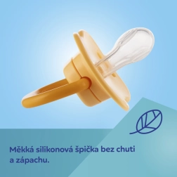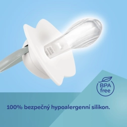 Die transparente Silikon-Saugspitze ist hypoallergen, geschmacks- und geruchsneutral, wird leicht akzeptiert und respektiert den natürlichen Saugreflex.