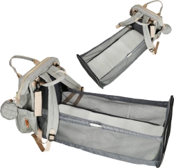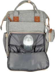 Der Rucksack eignet sich für den täglichen Gebrauch während Spaziergängen oder Reisen mit dem Kind. Dank der großen Kapazität kann er alles Nötige aufnehmen, einschließlich Flaschen, Windeln und anderer Notwendigkeiten. Funktionales Design ermöglicht das Tragen auf den Schultern oder das Befestigen am Kinderwagen.