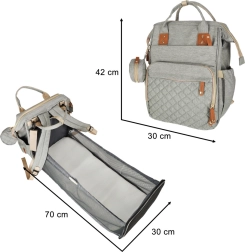 Der hintere Teil des Rucksacks lässt sich leicht in eine Wickelunterlage verwandeln, was den Windelwechsel überall und jederzeit ermöglicht.