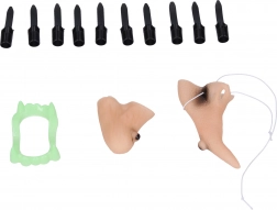 Kinn mit Gummiband, Nase mit Gummiband, 10 Aufsteckfinger mit Nägeln, Zähne, großer Hexenhut