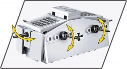 Der Sturmpanzerwagen A7V war der erste deutsche Panzer, der gegen Ende des Ersten Weltkriegs eingesetzt wurde. Dieses ikonische gepanzerte Fahrzeug mit einer Besatzung von bis zu 18 Soldaten führte eine 57-mm-Nordfeld-Kanone und sechs MG 08. Das COBI-Modell im Maßstab 1:72 mit einer Länge von ca. 11,5 cm bewahrt die typischen Merkmale des Originals und überzeugt mit präzisen Drucken von Kreuzen, Gittern und Luken.