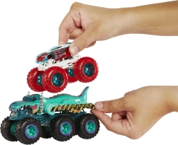 Mach dich bereit für eine monströse Fahrt! Die sechsrädrige HOT WHEELS MONSTER TRUCKS Big Rigs Zugmaschine ist ein robuster Partner für Rennen und Rettungseinsätze. Mit 6 Rädern bietet sie hervorragende Stabilität und rollt sanft über den Teppich wie auch durch die improvisierte Arena, während auffällige Dekors und die Metallkarosserie dem Modell einen authentischen Look verleihen.
