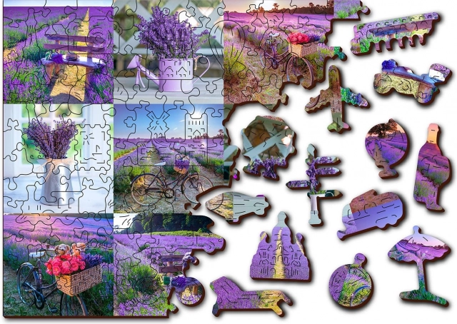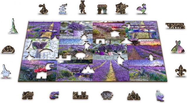 Gönnen Sie sich Momente der Entspannung und des Vergnügens mit dem WOODEN CITY Holzpuzzle Lavendel-Frankreich 2-in-1 mit 150 Teilen. Dieses Puzzle bietet ein einzigartiges Erlebnis dank speziell geformter Teile, darunter Tiere, Bauwerke oder Gegenstände, deren Details per Laser hervorgehoben sind. Jedes Teil kann auch als eigene kleine Figur dienen.