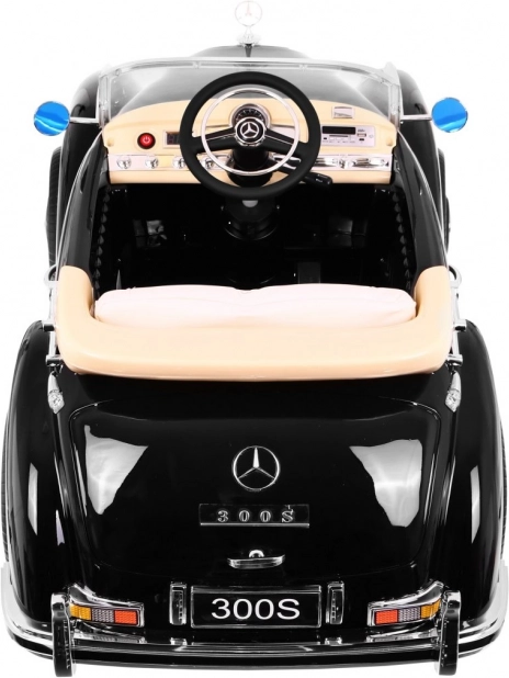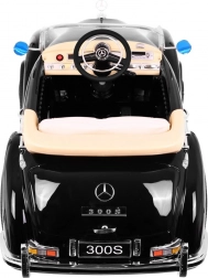 Genießen Sie eine einzigartige Fahrt im Geist der Klassik. Das Kinderauto MERCEDES-BENZ 300S im elegant lackierten schwarzen Finish kombiniert zeitloses Aussehen mit moderner Technik. Dank zwei 35-W-Motoren und einer 12 V/10 Ah Batterie beherrscht es eine sanfte Fahrt vorwärts und rückwärts, unterstützt durch die komfortable Federung der Vorderachse.