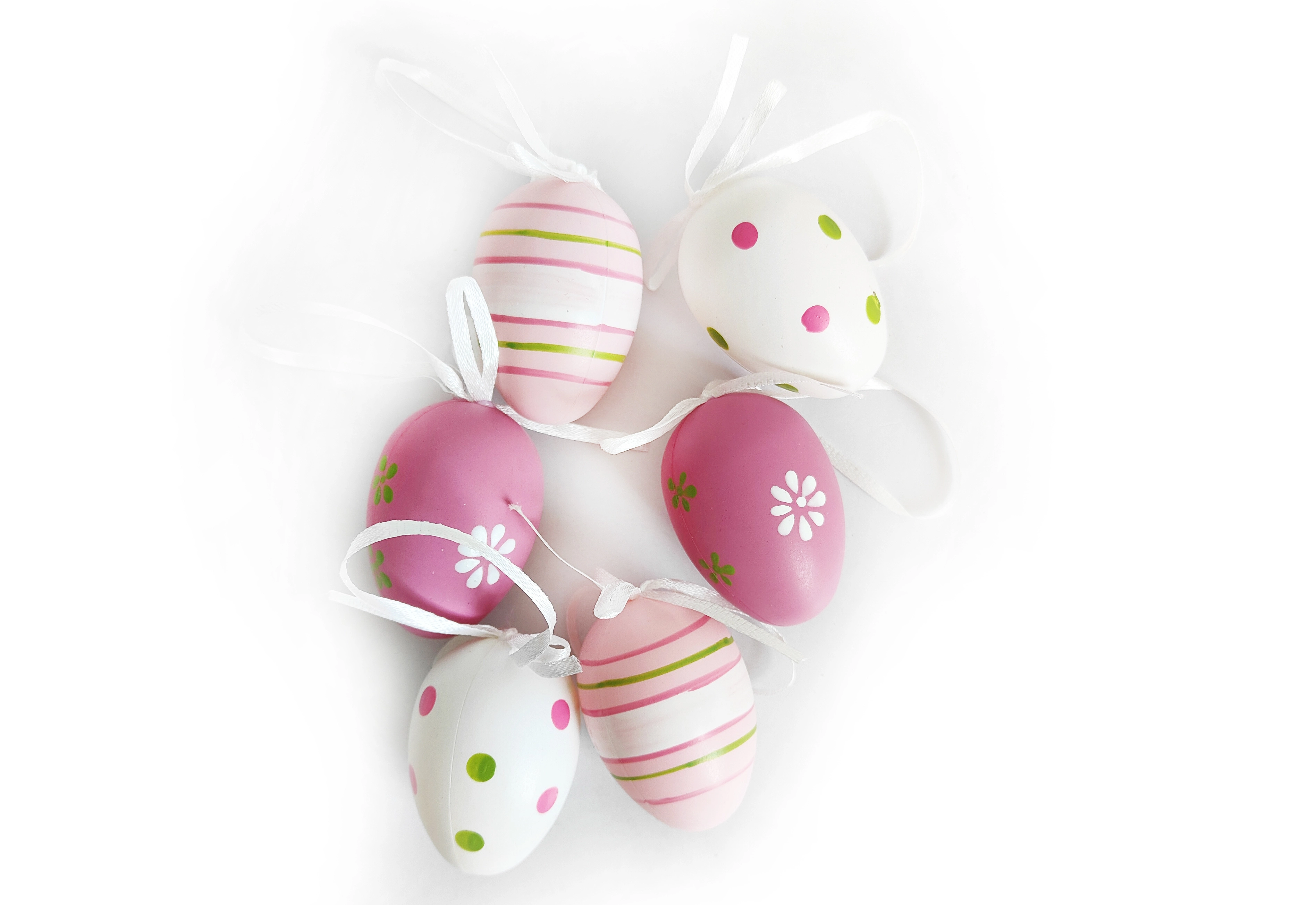 Diese dekorativen Plastikeier sind die ideale Wahl, um Ihr Zuhause zu Ostern oder zu anderen Anlässen zu schmücken. In jeder Packung finden Sie 6 bemalte Eier, die Ihrem Interieur fröhliche Farben und Charme verleihen.