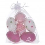Jedes Ei ist 6 cm lang und wird in einem eleganten Organzasäckchen geliefert. Dieses detailreiche und kreative Design macht die Eier attraktiv und sie können zum Mittelpunkt Ihrer Osterdekoration werden.