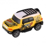 Die stabile Kunststoffkarosserie und das detailreiche Design eines Geländewagens machen auch wildere Fahrten im Kinderzimmer mit.