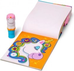 Auf dem Bild ist ein Malbuch und ein Stempel für Kinder zu sehen, die kreatives Schaffen fördern.