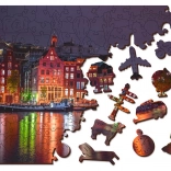 Dieses einzigartige Holzpuzzle begeistert alle Puzzle-Liebhaber. Dank Laserzuschnitt bietet es glatte Kanten, die sich leicht verbinden lassen. Es enthält insgesamt 150 Teile, davon haben 30 einzigartige Formen wie Tiere oder bekannte Gebäude – das verleiht einen edukativen Aspekt und zugleich visuelle Ästhetik. Das Puzzle ist als 2-in-1 konzipiert, sodass Sie es entweder nach dem raffinierten Nachtmotiv von Amsterdam oder nach dem Muster auf der Rückseite legen können.
