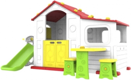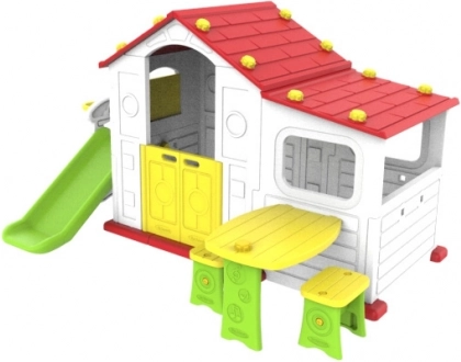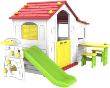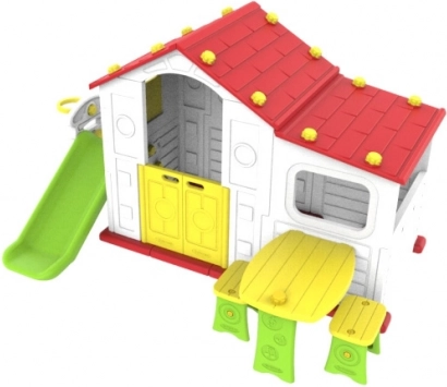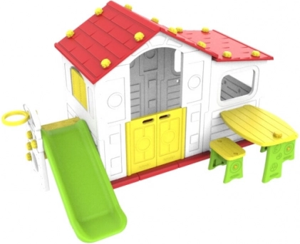 Entdecken Sie den Zauber des Gartenhäuschens, das nicht nur Spielraum bietet, sondern auch die kindliche Vorstellungskraft fördert. Dieses farbenfrohe Kunststoffhaus aus hochwertigem HDPE-Material bietet hervorragende Widerstandsfähigkeit und Flexibilität. Alle Wände sind aus doppeltem Kunststoff, was die Stabilität und Sicherheit der Konstruktion erhöht.