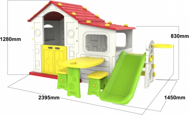 Das Haus beinhaltet ebenfalls einen Basketballkorb, der Kindern zusätzliche Möglichkeiten für aktives Spielen und sportliche Betätigung bietet.