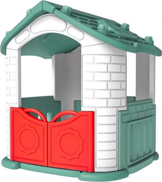 Das Haus bietet eine große Spielfläche mit großen öffnenden Türen. Eine doppelwandige Rutsche und robuste Treppen bieten Sicherheit und Stabilität während des Spiels. Das Haus enthält einen Vorgarten, der mit einem Zaun und einem Eingang zum Haus begrenzt ist, was zusätzlichen Raum für kreatives Spielen bietet.